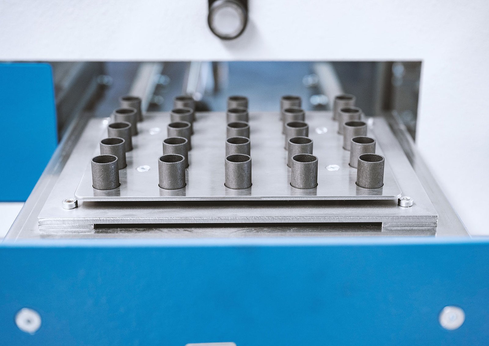Production samples can be automatically received by an upstream preparation circuit. In this case, the samples are transported from the sample preparation machine to the CNS Lab by means of a pneumatic pneumatic tube system. Fixed pieces are usually punched from lug or disc samples with the help of the HUST automatic punching machine. From here, four die-cuts are sent separately to the receiving unit within the CNS Lab. In addition, milling chips can also be used for analysis after they have been automatically picked up in the milling machine and transferred to the CNS Lab. The PrepMaster control software takes care of the management of samples, forwarding of the identification numbers and communication with the analyzer.