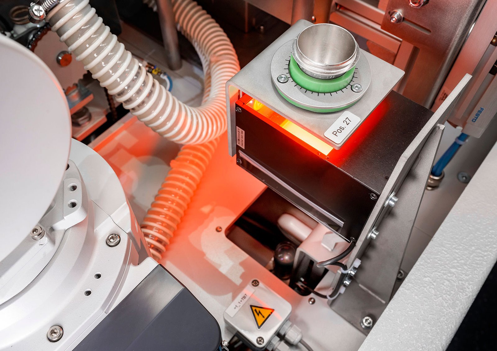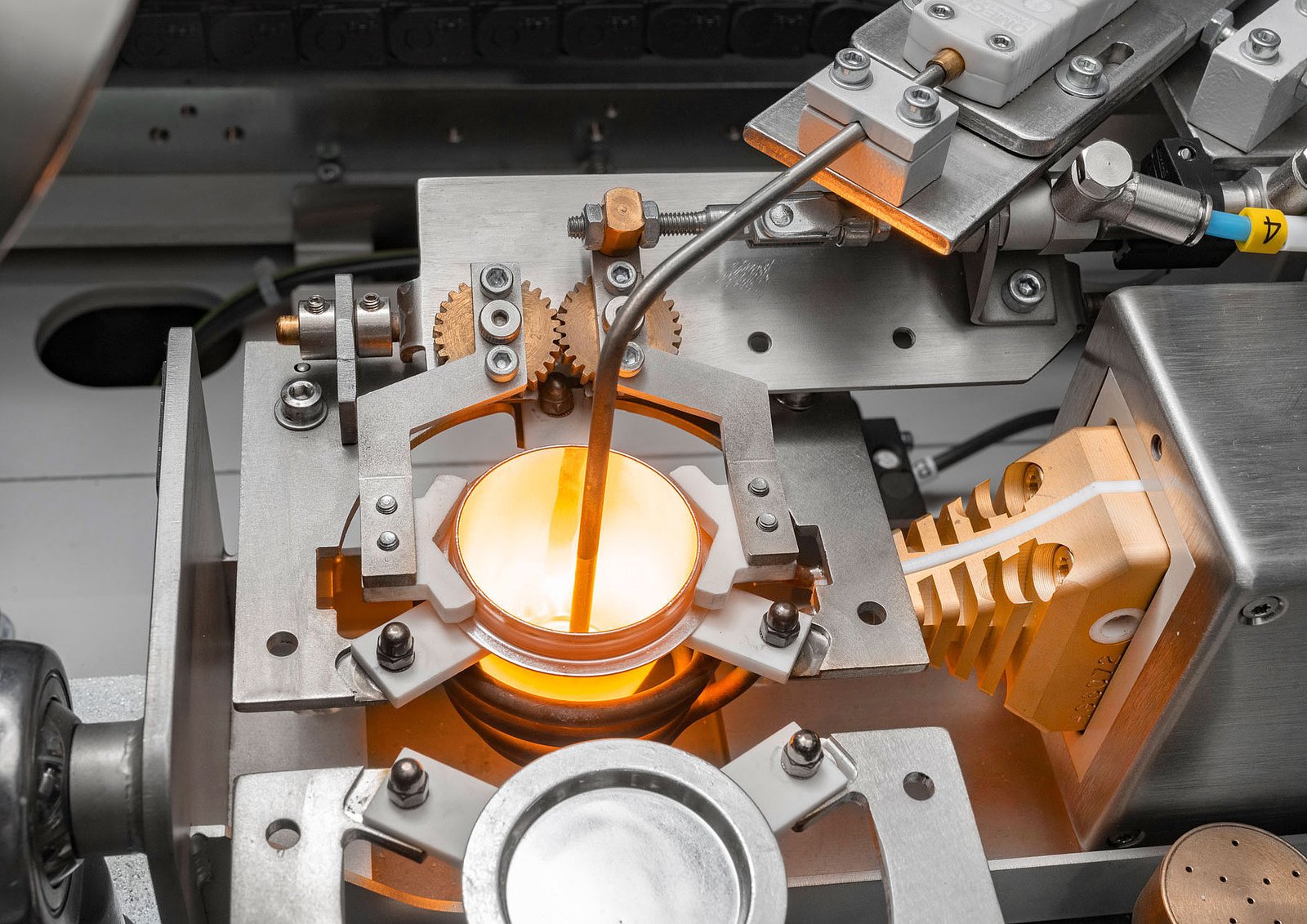 The inductive fusion process not only allows the temperature of the melt to be set quickly and exactly to the desired target value. The technology also ensures precise temperature control. With the temperature calibration unit (optional), the individual emissivity of each crucible can be determined and monitored over the lifetime of the crucible. This enables even more precise temperature determination during the fusion process. The automatic SparkPoint vision system can also be used for automatic crucible identification. In addition, the crucible can be oriented before each digestion process so that the pyrometric temperature measurement always takes place at the same crucible position.