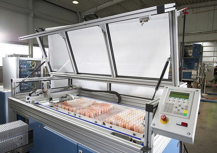 Several options of the sample input magazine are available including 62 position sample magazine and a 200, 300 or 400 vial position tray magazine. The magazine can be connected to the preceding preparation cell or can be manually loaded. There is also a 10-position manual sample input magazine in the weighing unit where samples can be registered.