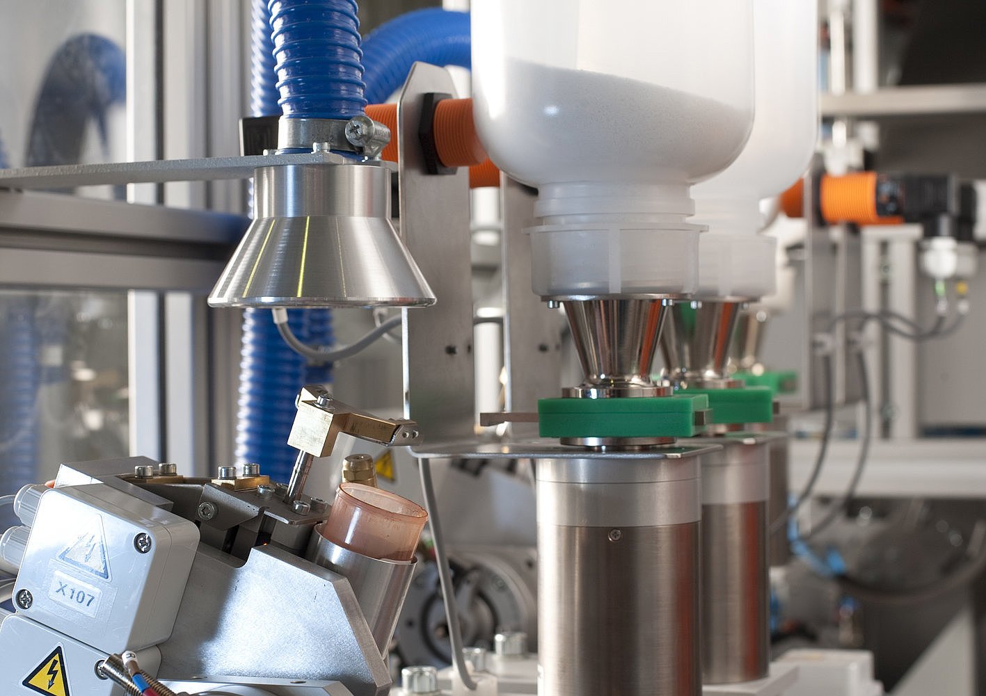 Samples in vials are placed into one of the three dosing units. For the fusion process, flux and sample are alternately weighed into the crucible to achieve an optimal dilution of both substances. Subsequently, the crucible is transferred to the mixing station, where flux and sample are homogenized. Optionally, a release agent can be added. Finally, the crucible is placed on a turntable ready to go to fusion.