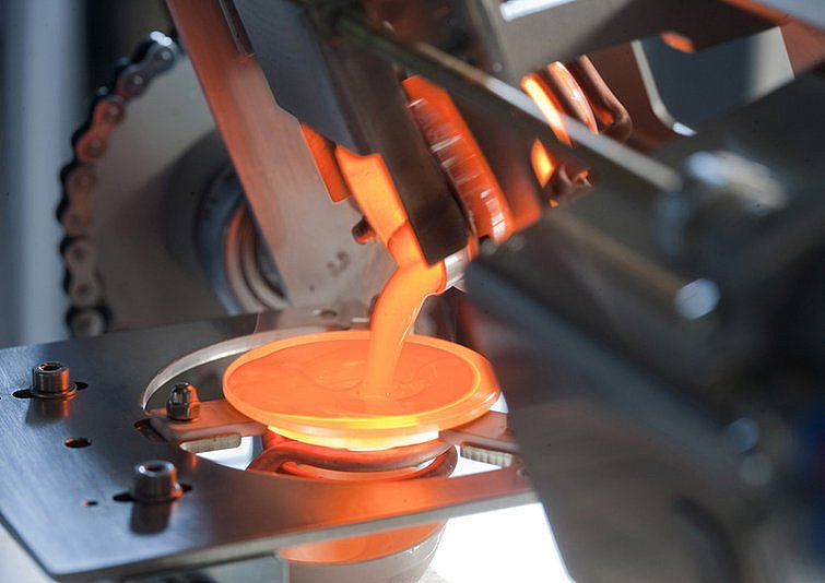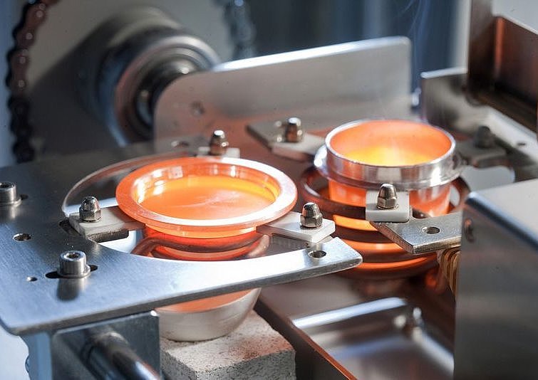 The crucible is heated by induction. During this process, the sample can be swirled to aid the mixing. In parallel, the casting dish is heated to a predefined temperature. When the heating cycle is complete, the sample is automatically poured into the casting dish. The bead is allowed to cool within the casting dish. Depending on the sample type different cooling regimes can be used such as fast cooling with compressed air.