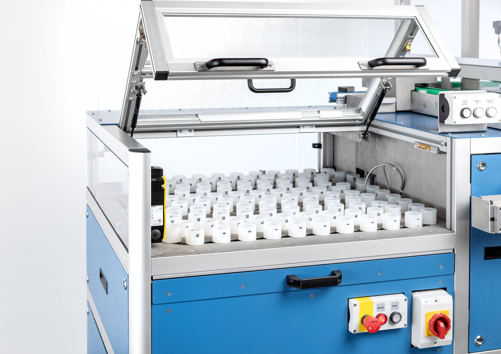 After the fusion process, the platinum/gold crucible is automatically cleaned in a heated ultrasonic bath (option). The cleaning liquid is replaced at freely definable intervals. Finally, the crucible weight is checked to ensure complete cleanliness and readiness for use.