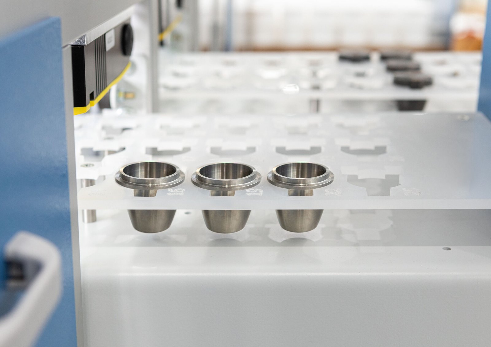 A special non-stick coating and the shape of the special sample cup ensure reliable dosing. Since the sample material is dosed directly from the cup, no additional cleaning is required.