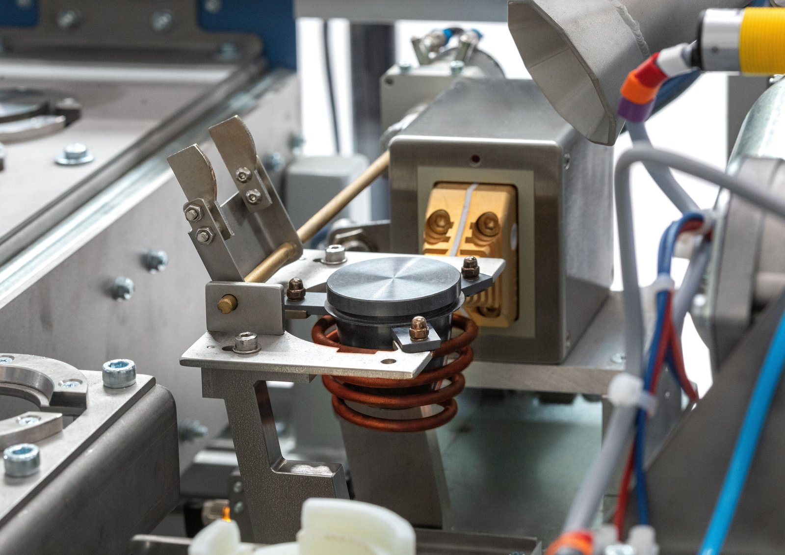 The HL-HAG can also be equipped for peroxide fusion. In this process, fusion is performed in zirconium or nickel crucibles by high-frequency induction. Since an exothermic reaction can occur during the process, causing material ejection, the crucible is closed with a lid. After fusion is complete, the melt is automatically transferred to a sample vessel for further dissolution, for example with hydrochloric acid.