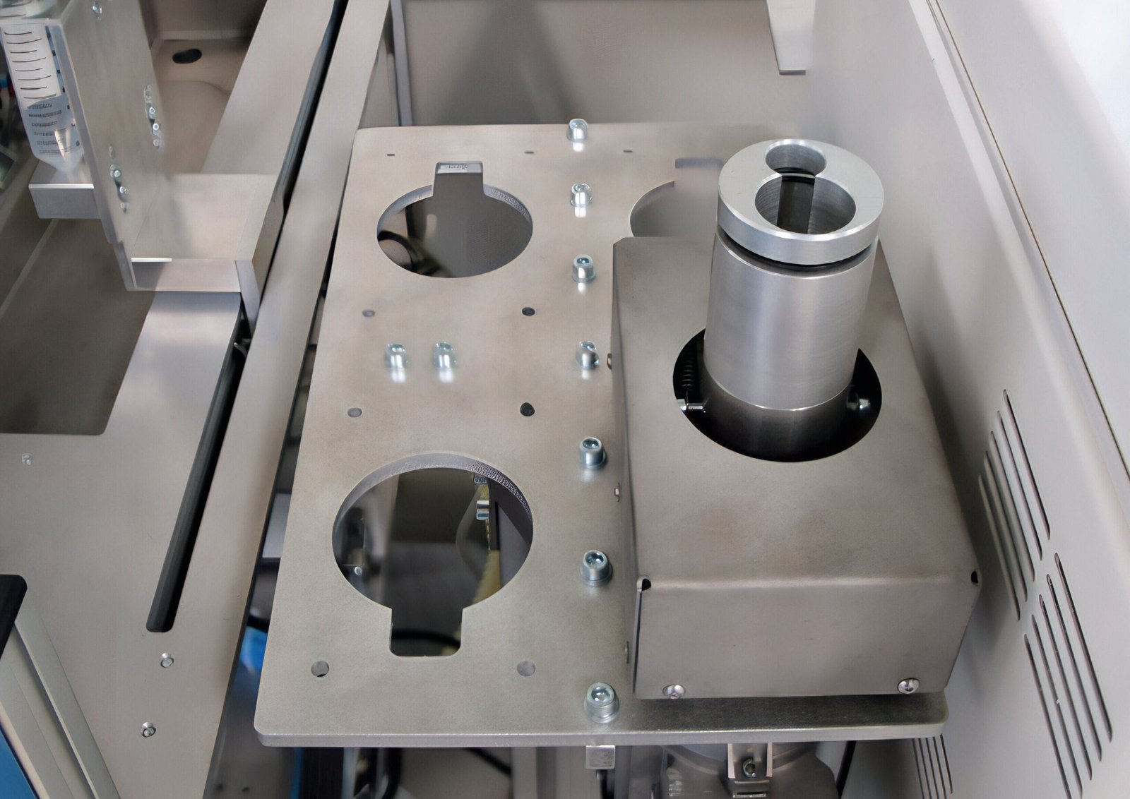 Samples can be fed via portal systems or other handling devices. Thanks to its space-saving design, it is possible to place several units next to each other in a system to efficiently carry out parallel processes. The vials are fixed by an elastic rim, ensuring reliable handling before and after the mixing process.
