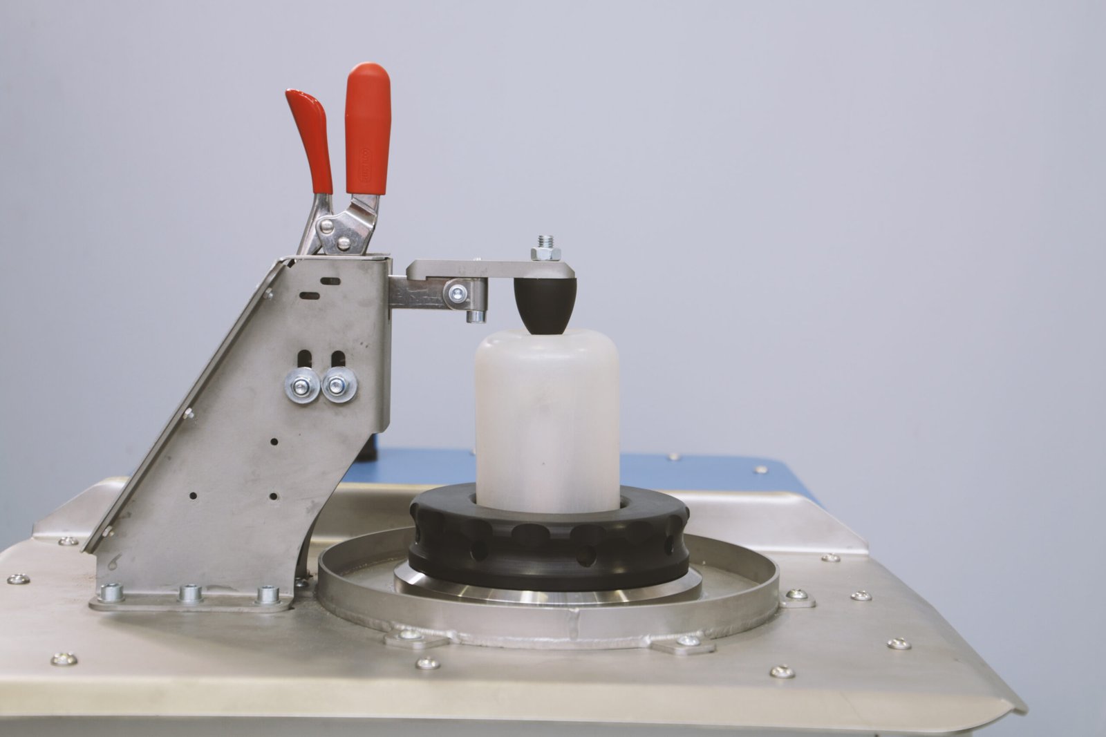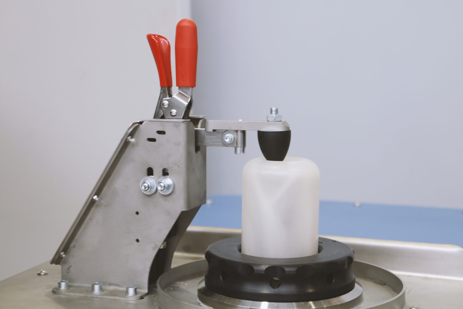 The HP-BS is a specially developed beaker washer designed for the thorough cleaning of sample containers, including the external thread. Equipped with an interchangeable cup holder, the machine enables the cleaning of commercially available centrifuge bottles with volumes of 250 ml (without thread cleaning), 500 ml and 1000 ml. The HP-BS automates complex and time-consuming cleaning steps, such as the manual scraping of sample beakers. This leads to a significant improvement in work safety, a reduction in the physical strain on laboratory staff and an optimization of reproducibility during sample preparation and analysis.