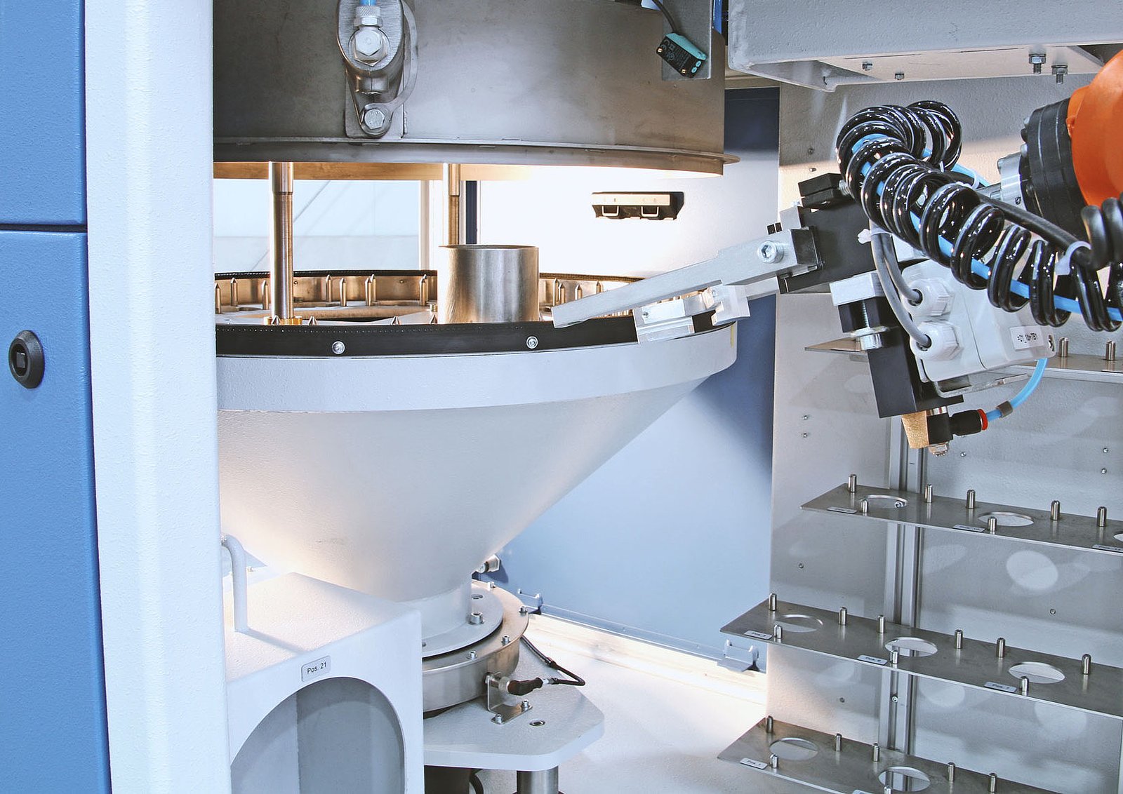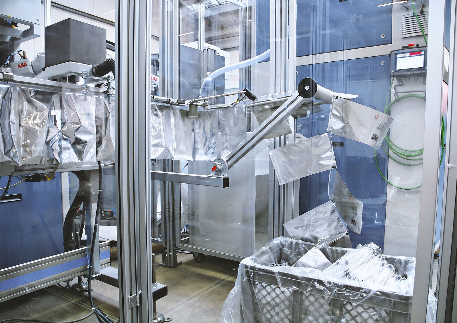 The HP-BVM enables virtually contact-free filling of the bags. This significantly reduces the risk of contamination from previous samples. Only the funnel, which guides the sample material into the bag, comes into contact with the sample material. After the respective sample batch has been packaged, the robot removes the funnel from its holder and cleans it with compressed air in a special unit. A suction system is installed at points where dust may be generated.