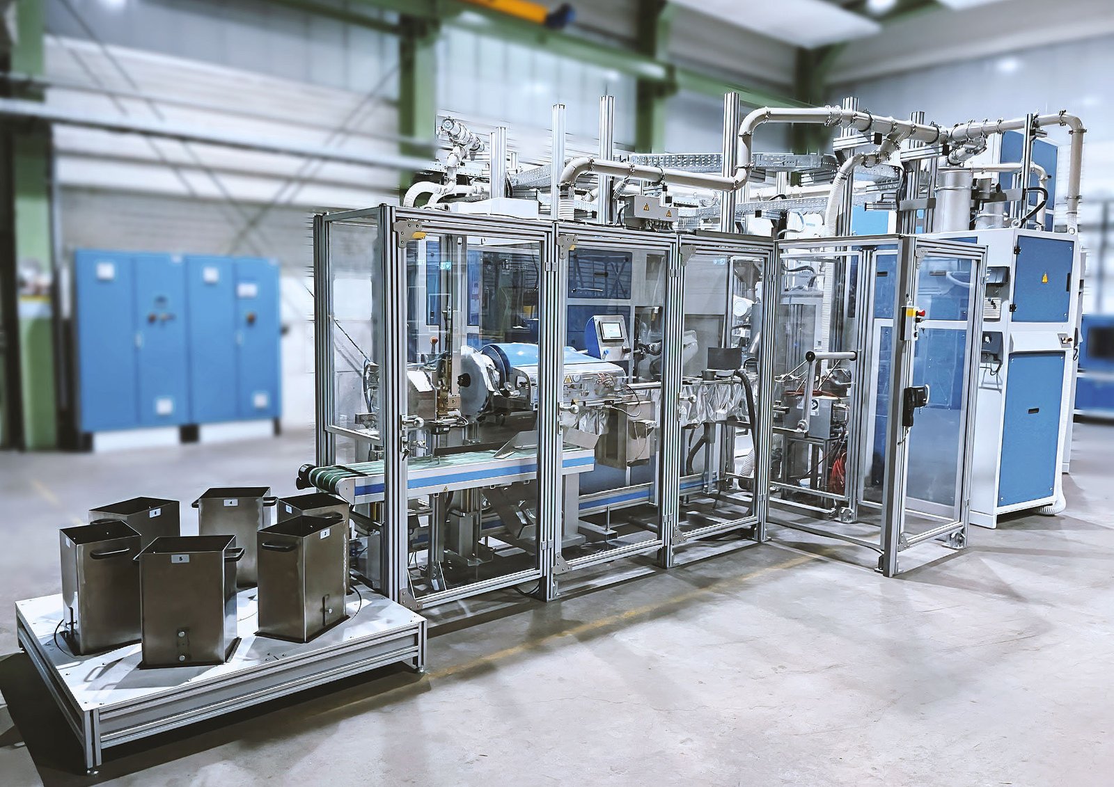 The HP-BVM was designed to be particularly easy and user-friendly to operate. The machine’s concept is based on a chain of connected pre-made bags. These are guided along rails that open and support the bags during the filling process. The operator simply places a new set of bags in a box or on a pallet in front of the machine and attaches the bag chain to the machine. The machine then immediately starts running. The most important machine parameters can be easily adjusted. These include, for example, the sealing temperature, the air jet flow for opening the bags or the feed speed.