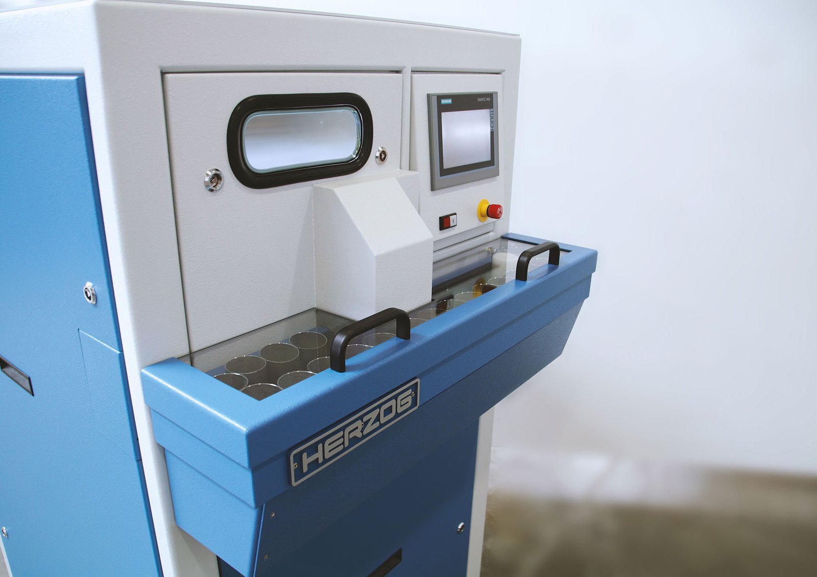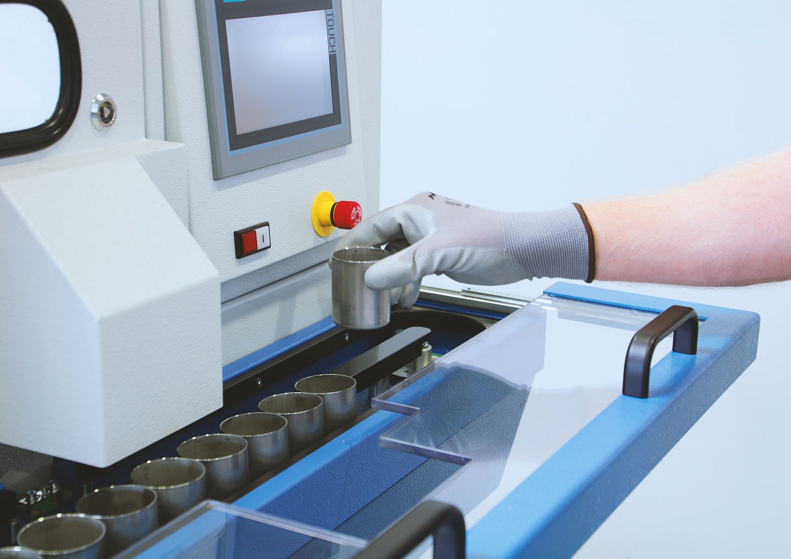 The sample material is fed into the machine using stainless steel cups. This can be done automatically, manually or via an input magazine. The cup is emptied automatically after the machine is started. The process cycle then starts with the preselected machine parameters, such as crushing time and cleaning time.