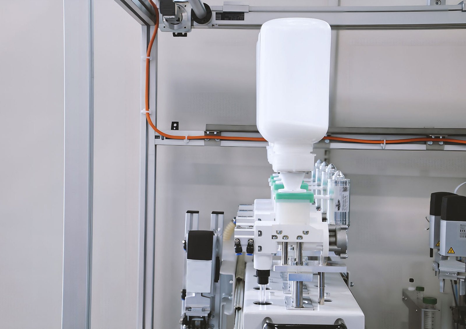 The HP-GSD is integrated into various machines and units. For instance, it can be found in the Powder Dosing Unit of the LiquidLab, but also in the HAG-HF for dosing fluxes. The HP-GSD has a large storage container with a standard volume of 2000 ml. Smaller containers are also available. In the LiquidLab, the Powder Dosing Unit can be pulled out of the frame so that all components are easily accessible. This makes it particularly easy for the operator to refill the storage container. For hygroscopic materials, the storage container can optionally be fitted with a moisture trap.