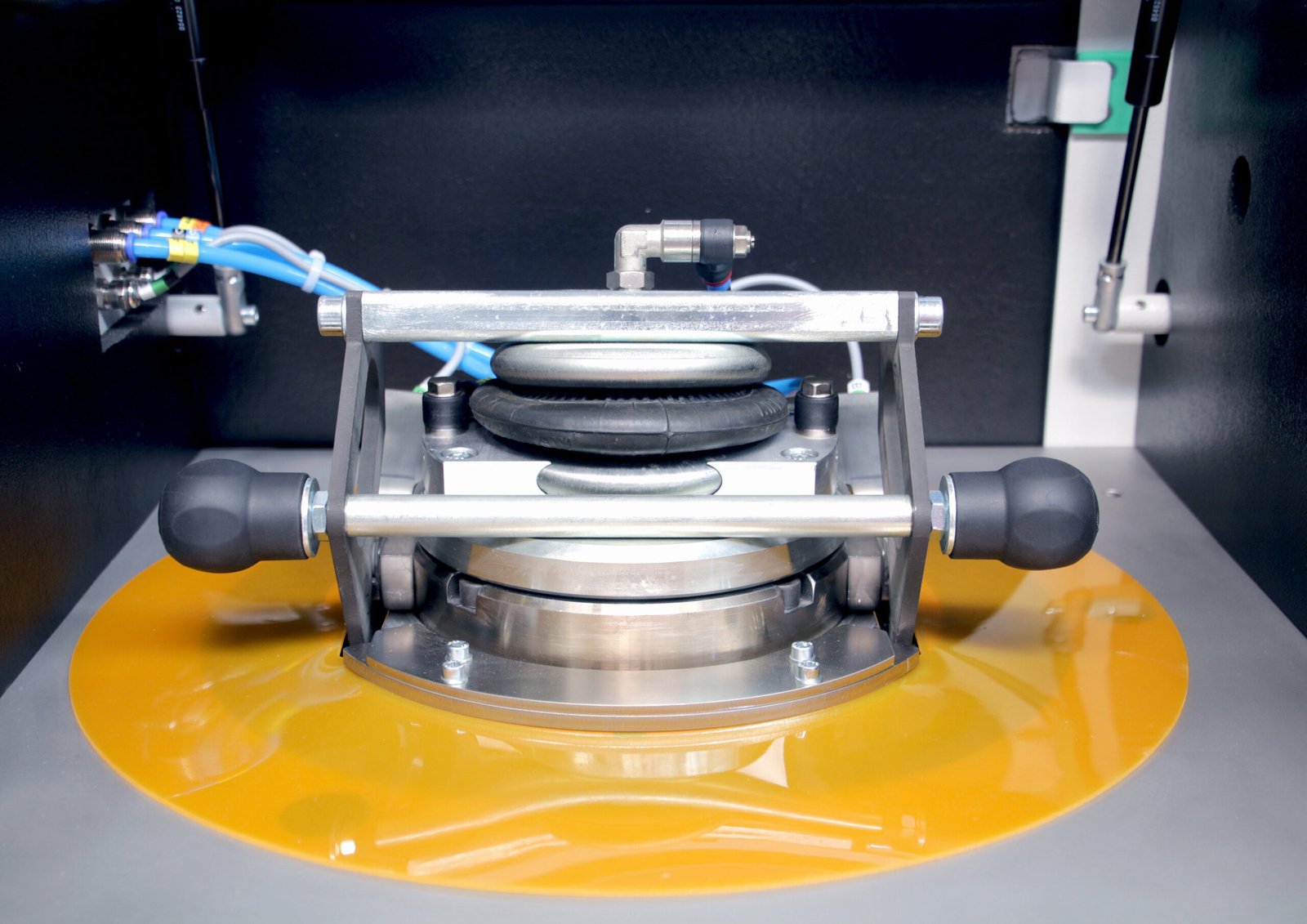 After the sample has been entered, the operator folds down the grinding vessel lid. The grinding vessel is then automatically closed tightly by a bellows cylinder. When the grinding process is complete, the sample is automatically dispensed into a sample cup at a separate dispensing location for immediate collection.