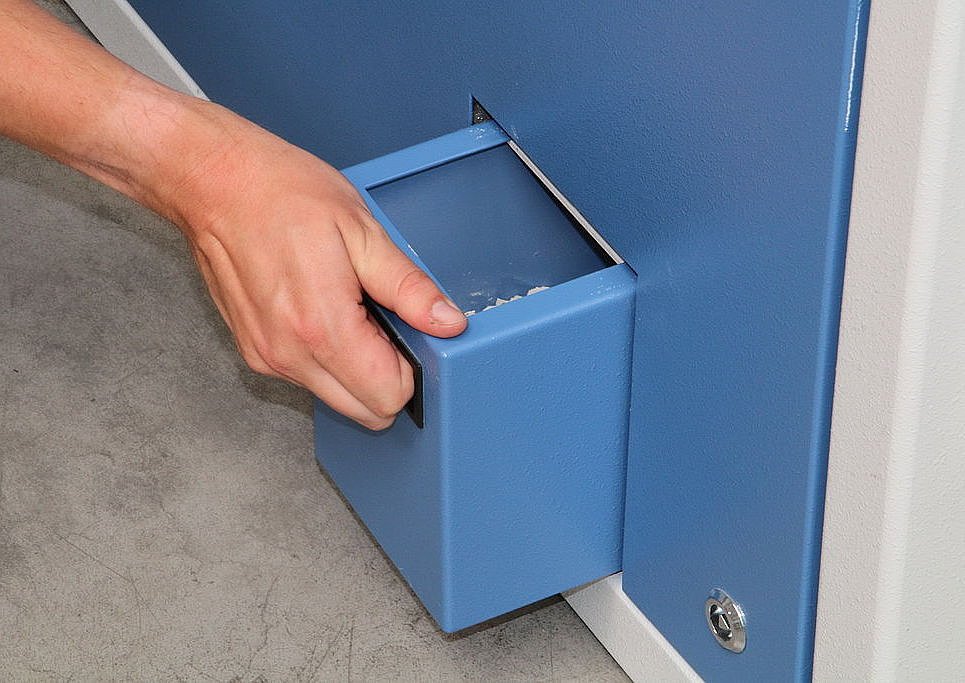 As an option, a 23-position-magazine is available to allow automatic batch processing of samples. The prepared pressed pellets are collected in an output magazine attached to the side of the machine. As a matter of choice for the operator, the cup can be returned empty to the magazine or filled with retained sample material for further sample processing or analysis.