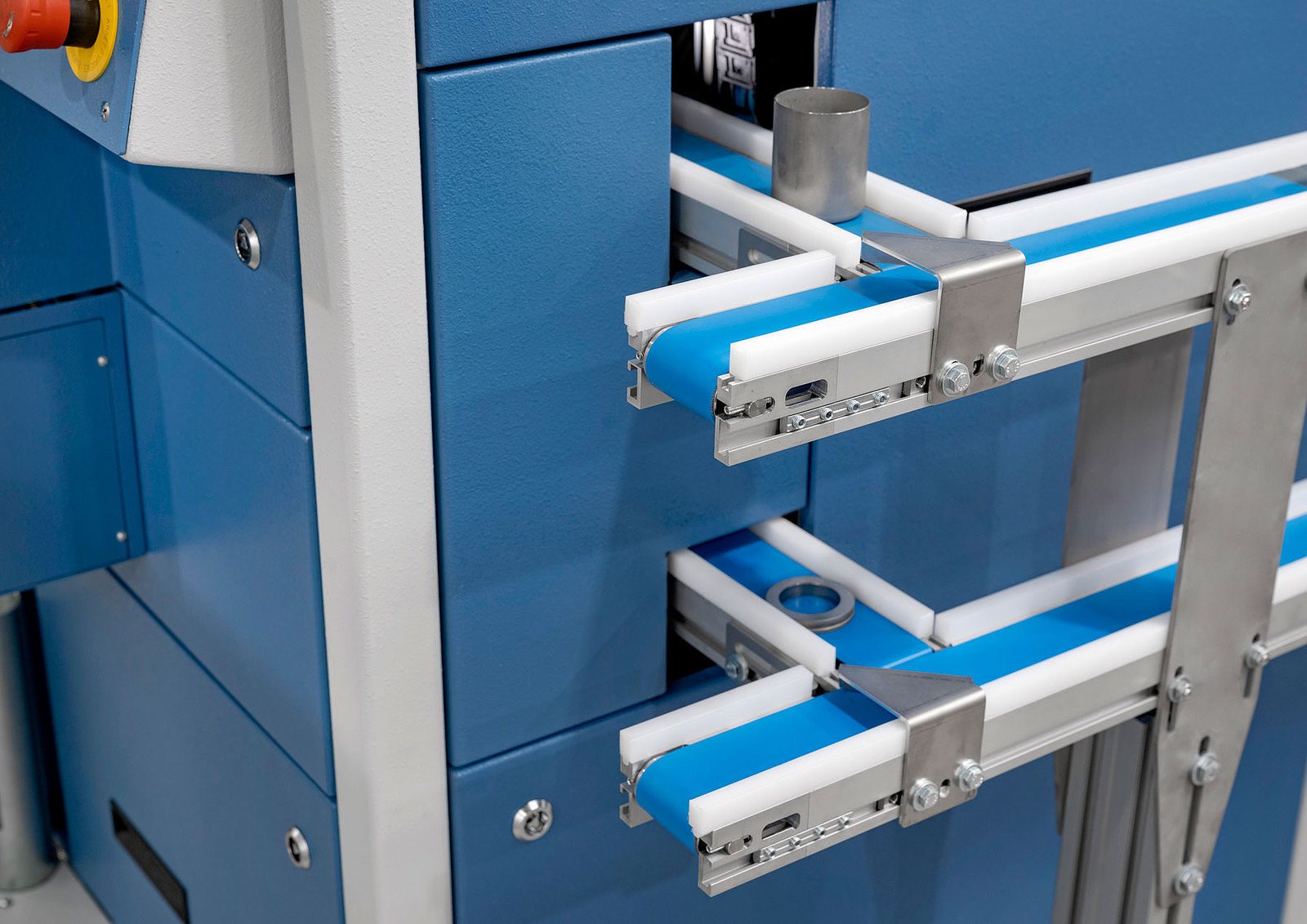 - Conveyor belts for cup and ring transport on both sides of HP-MP, partially height-adjustable