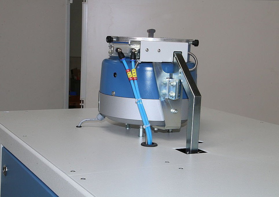 In a linear Automation The HP-MP can receive the sample from an input magazine, a pneumatic tube station (type HR-LA), a crusher (HP-CA) or a gravimetric dosing unit (HR-WA). Pressed tablets are automatically transported to an XRF instrument, diffractometer or other analyzer such as a colorimeter. Several HP-MPs can be combined with each other via a conveyor belt and connected to other system components.