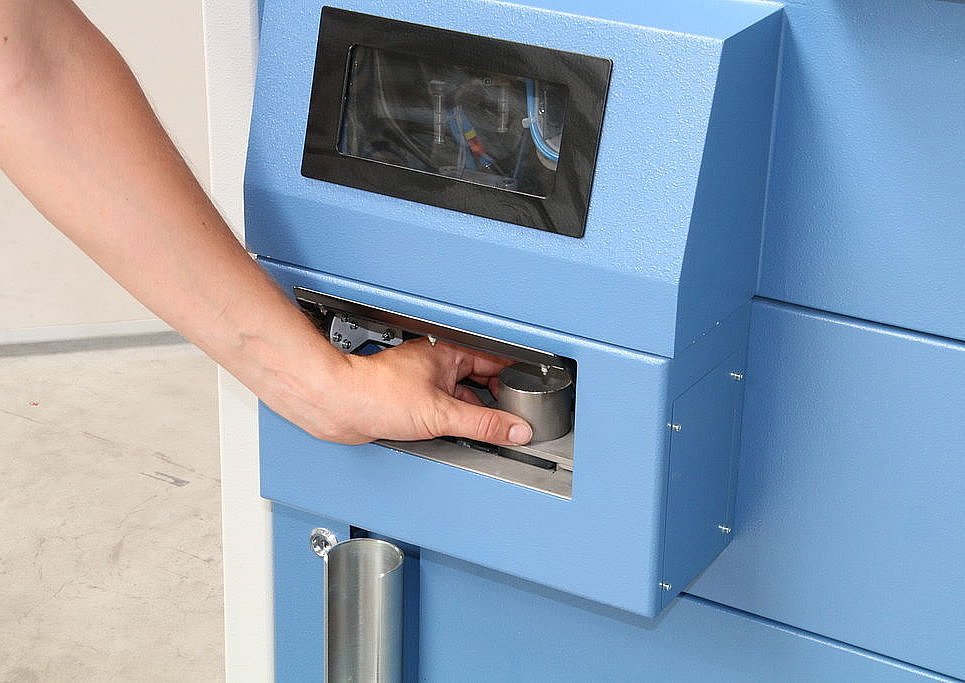 The HP-MP includes a wide range of functions to meet the diverse requirements of quality control and assurance. By means of thorough cleaning of all contact surfaces, blind dosing and other processes, cross-contamination between consecutive samples is effectively avoided. The powerful and infinitely adjustable hydraulic module with press forces of up to 200 kN is also suitable for demanding analytical tasks. The HP-MP can automatically store an aliquot of the sample for further analysis. Grinding and pressing can be carried out independently of each other. These and many other features make the HP-MP ideal for the processing of cementitious material as well as for a wide range of other industrial and research applications.