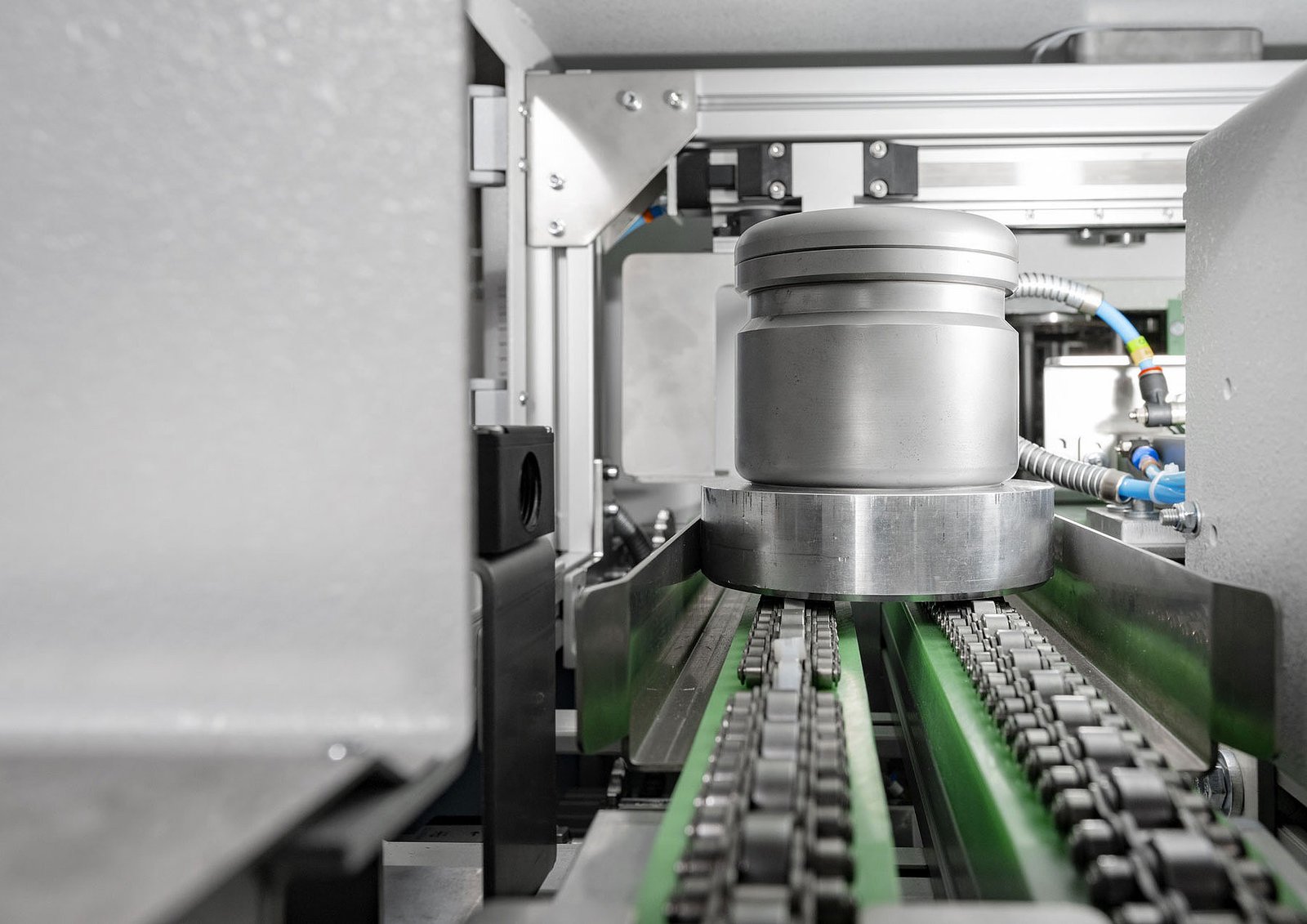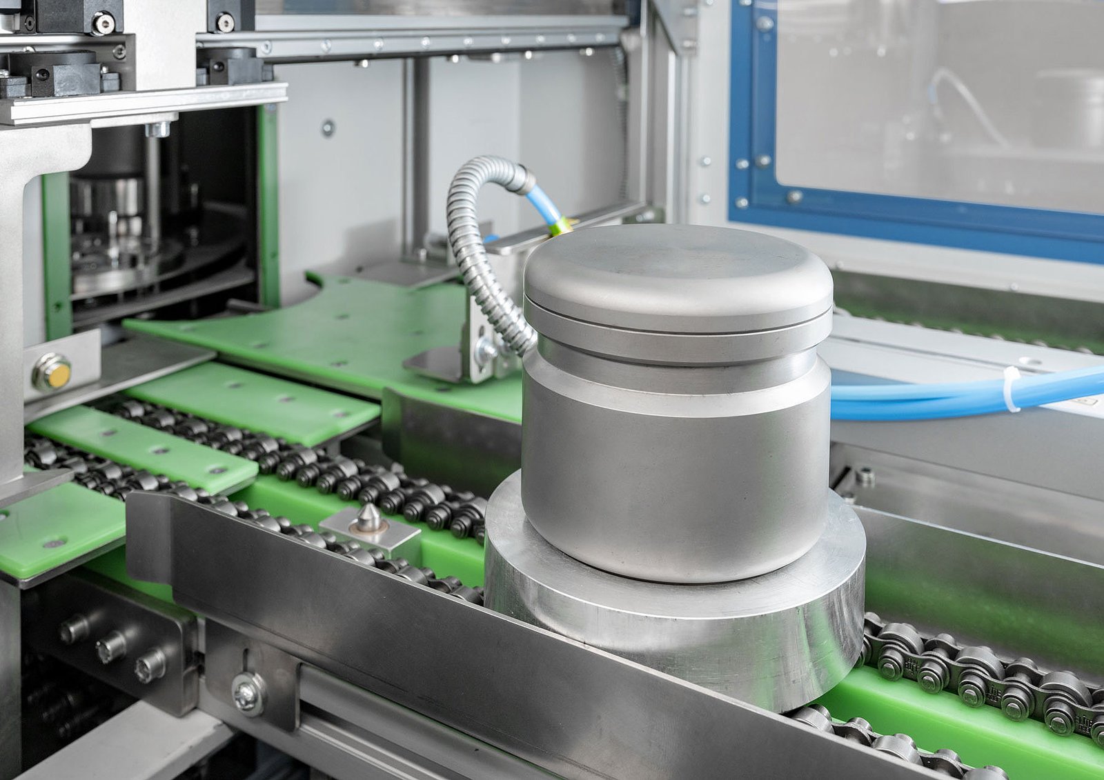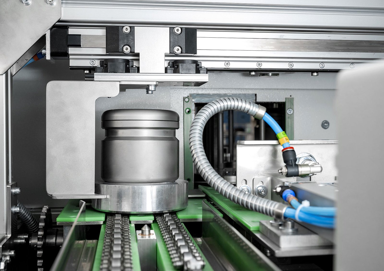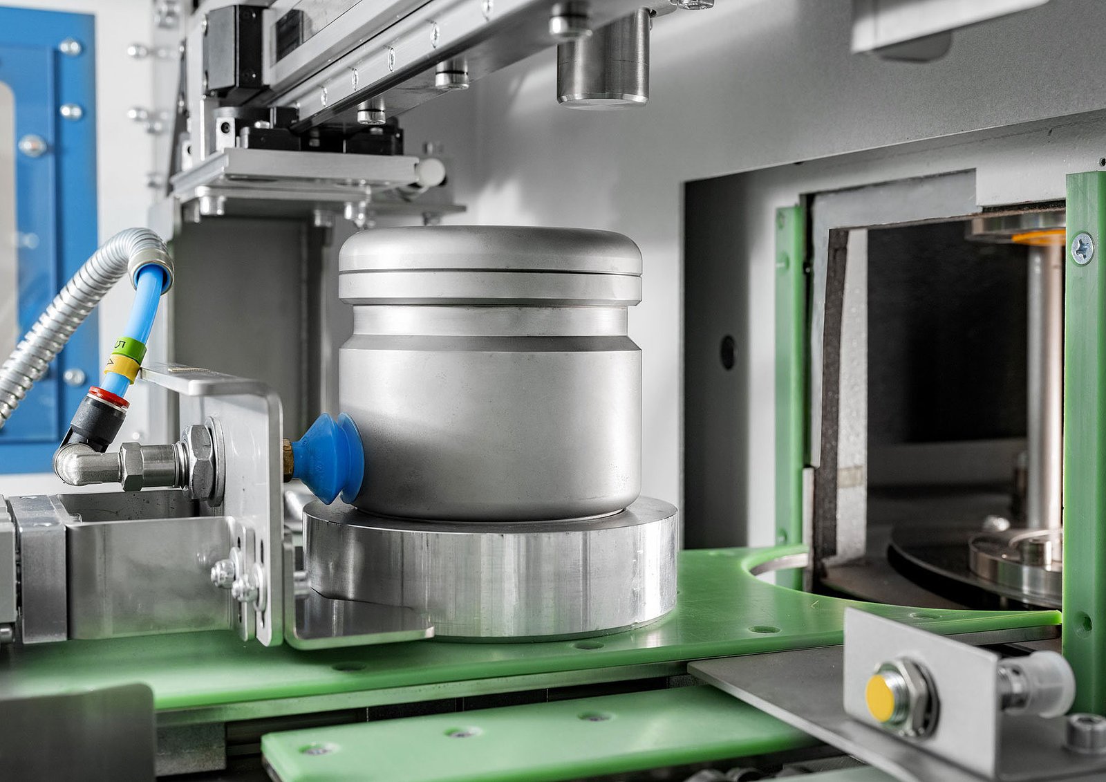 These are then successively and automatically moved to one of the four sanding positions within the HP-PKM and clamped. Once the sanding process is complete, all containers are deposited on the output side of the magazine and can be removed by the operator.