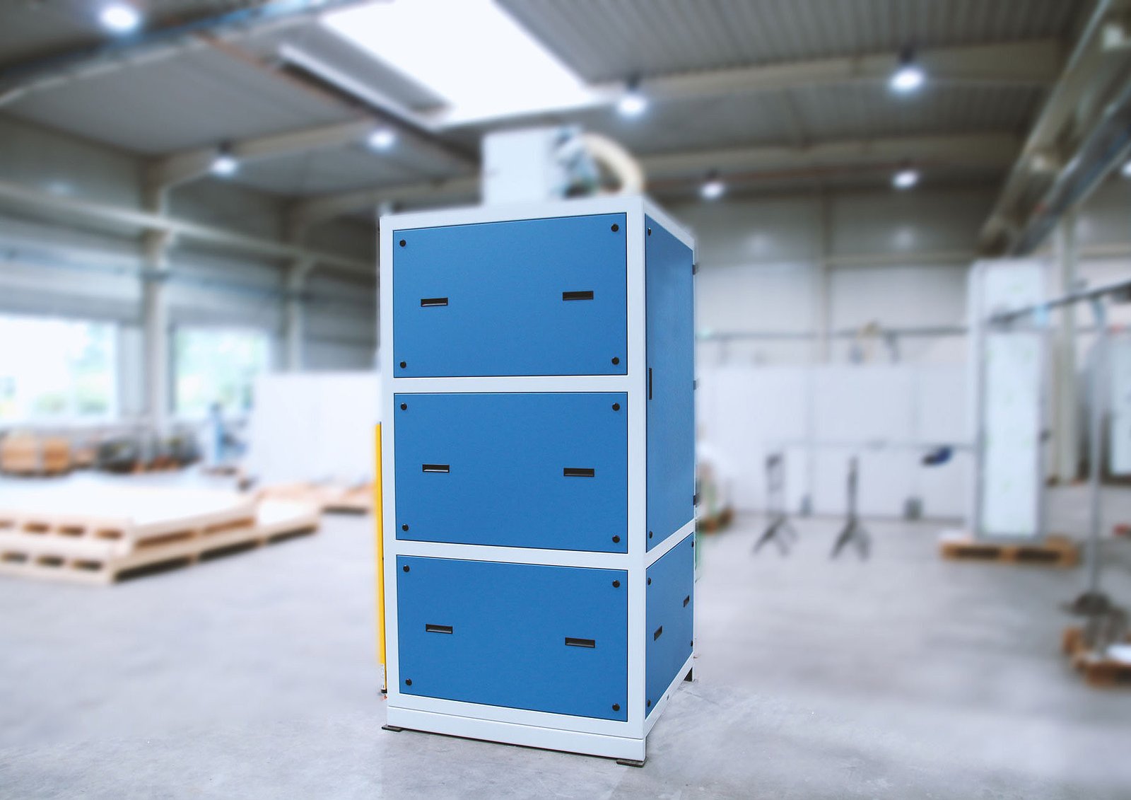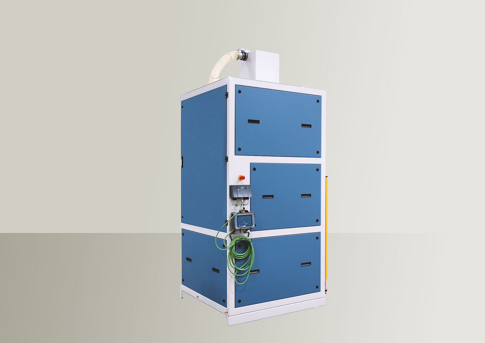 When designing and selecting the installed components, we placed the highest value on occupational safety. The installation of the sieve in a frame further reduces the already low noise level, so that comfortable operation in a laboratory is possible. The numerous extraction points minimize dust pollution.