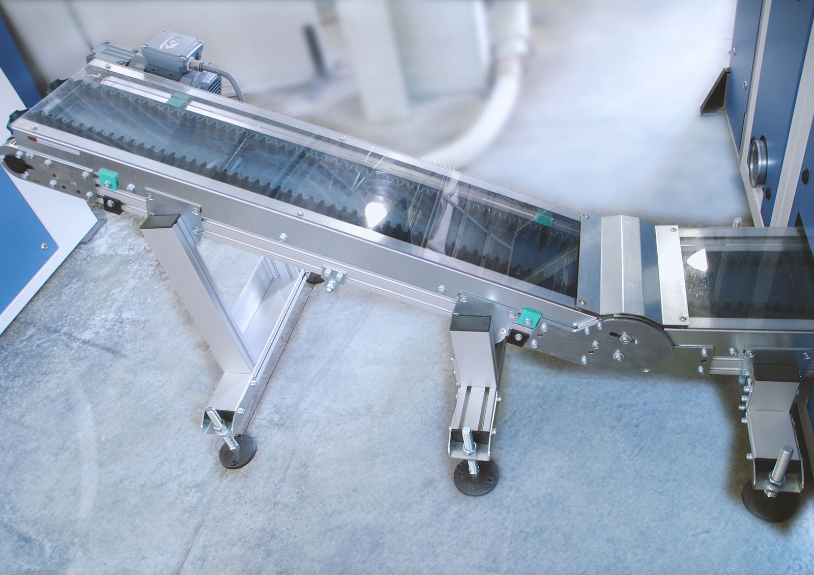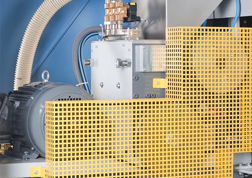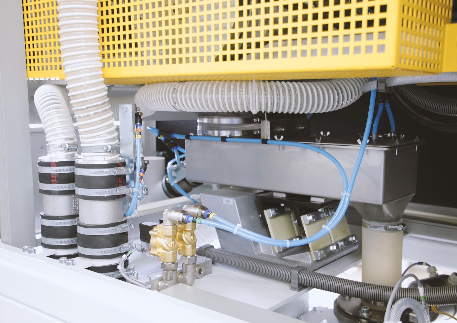 The machine is totally enclosed and sound insulated. Safety switches automatically deactivate the machine in case of operational malfunctions, which are displayed at the integrated control panel.