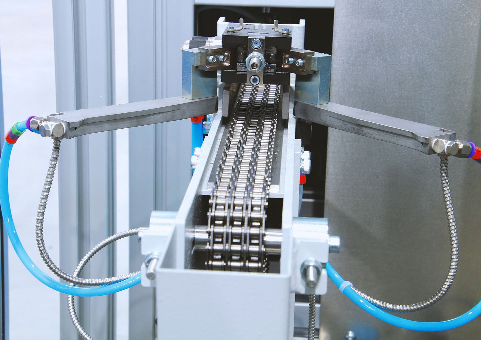 The fully automatic laboratory station HR-LSM is designed to receive pneumatic carriers, open them, and discharge the sample for further processing. The carrier is closed again and sent back to the sending station within the plant. The sample received can be transported onwards either on conveyor belts or by a robot. The rear of the station is open, providing a robot with direct access to the sample.