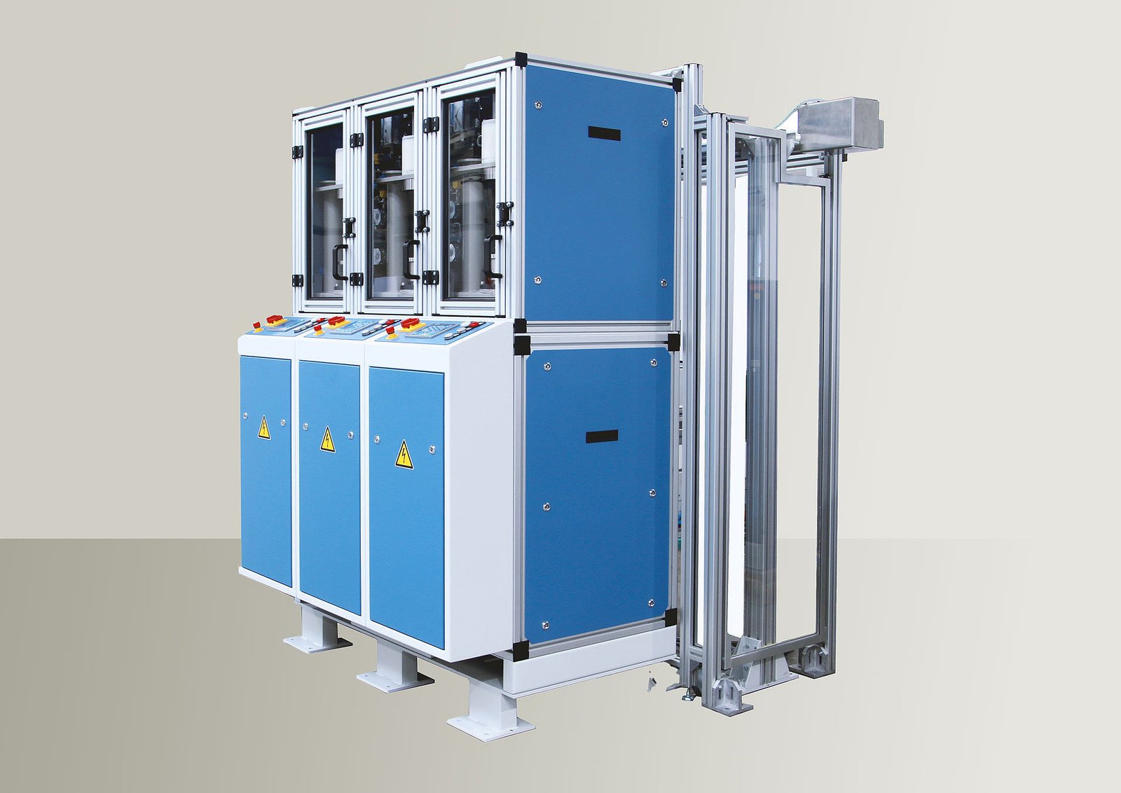 The station is fitted with a door on the front for manual operation. The door is equipped with a safety interlock. Capsules can thus be removed or inserted into the system manually. An operator panel permits manual operation and the specification of station parameters.