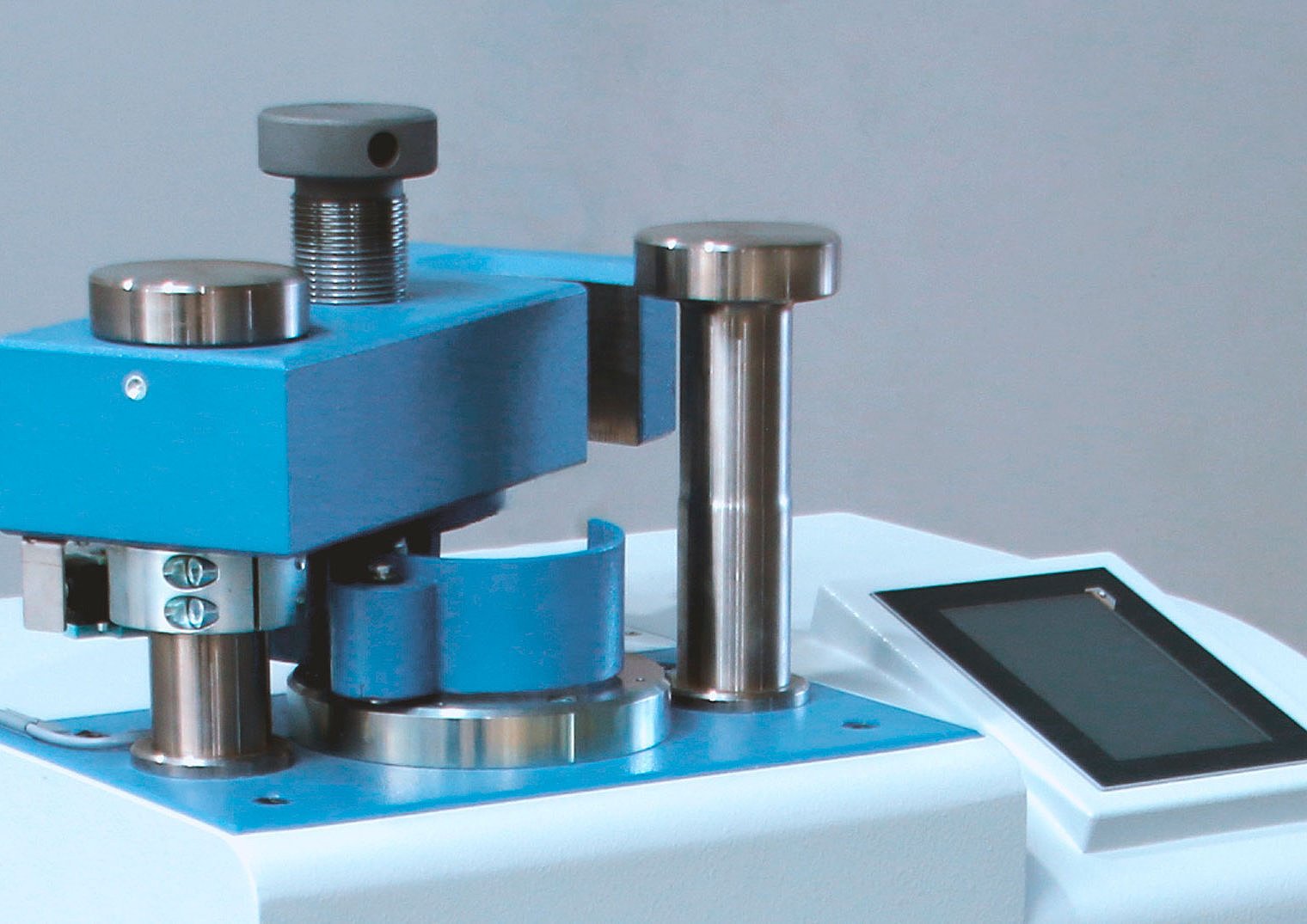 The HTP can be equipped with a cleaning device for steel rings, which is attached to the side of the machine. This allows effortless and rapid removal of the sample material from the ring after analysis is complete. The cleaning device is available in manual and pneumatic versions.