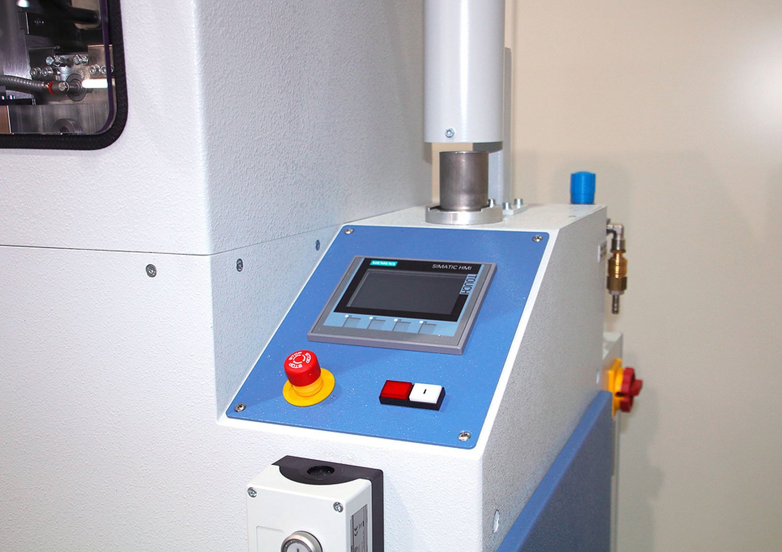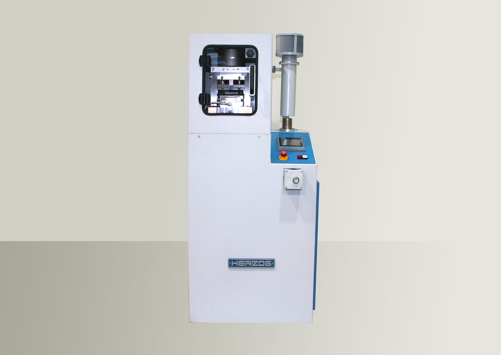With the HUST-MAN, Herzog also offers a semi-automatic stand-alone machine for punching samples. Disc specimens with a diameter of up to 40 mm and a thickness of approx. 4-5 mm or lug specimens are inserted into the punching device by hand and the safety cover is closed. The punching process is started by pressing the start button. The punched out analysis pieces are pneumatically transported away from the punching area and collected in a collection container. The specimen is removed by hand.