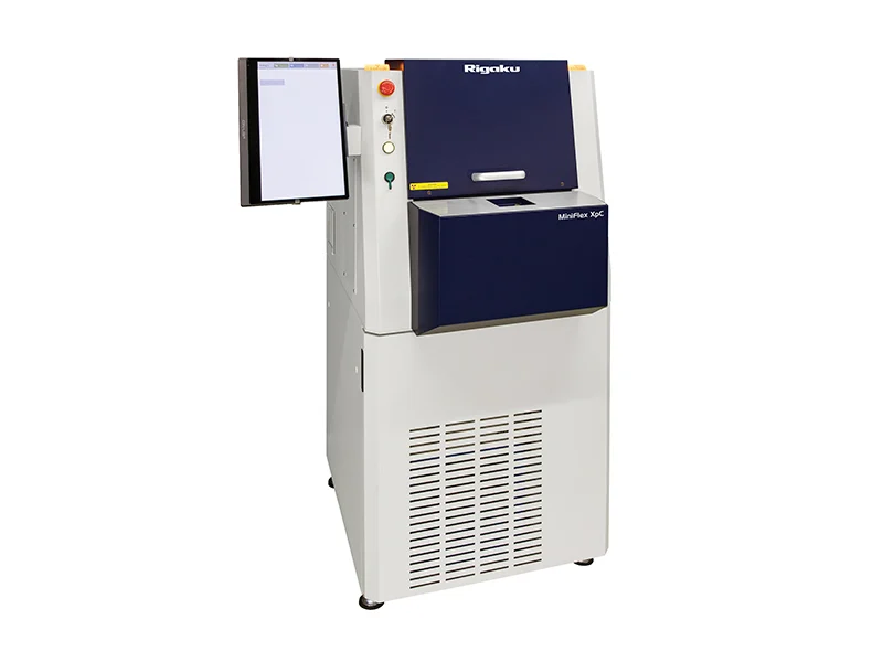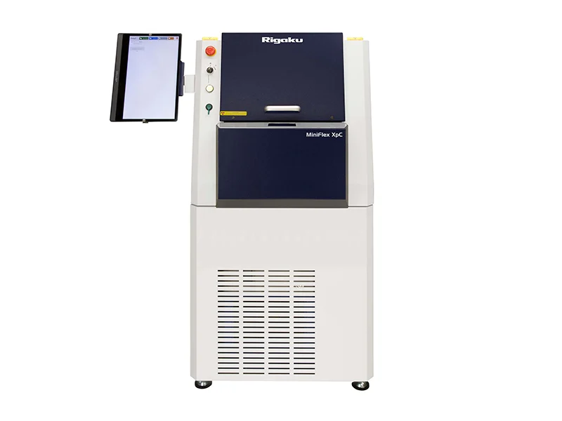 The MiniFlex XpC features a compact molded ceramic X-ray tube. The generator for the X-ray source has also been improved, enabling a high output of 800 W while being almost the same size as the 600 W generator of the MiniFlex desktop X-ray diffractometer.