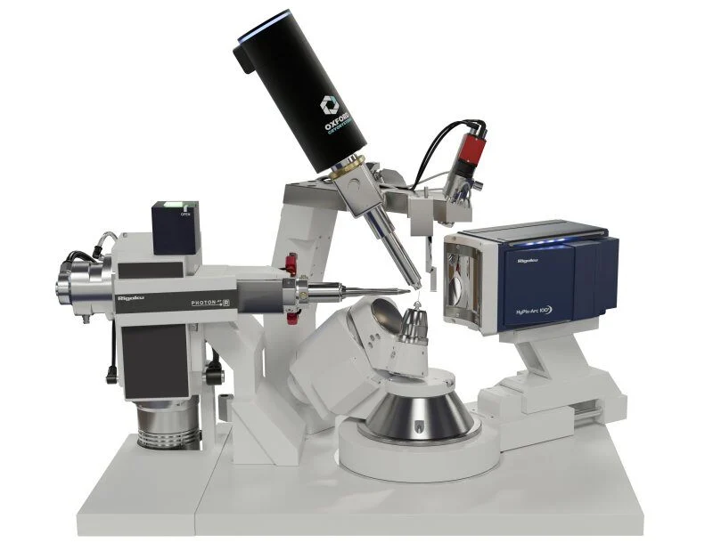 Rigaku’s own HyPix family of HPC detectors use solid state pixel array technology to enable direct X-ray photon detection and counting. Direct X-ray photon detection means that X-ray photons are counted instantaneously as they arrive at the detector. There is no conversion to visible light by a scintillator so the energy of the photon can be assessed at moment of detection. This leads to essentially noise free images. The HyPix detectors feature a 100 Hz frame rate which allows for data fine slicing even at the fastest goniometer speeds. The HyPix detectors incorporate dual counters enabling several modes of operation. Rapid alternating counter electronics (RACE) technology enables the 100 Hz zero dead time mode, ensures that no pixel is blind for more than a few nanoseconds during exposure to X-rays. The high dynamic range mode combines the counters to offer a massive 31-bit counter depth. Dual thresholding offers differential modes and selective signal suppression.