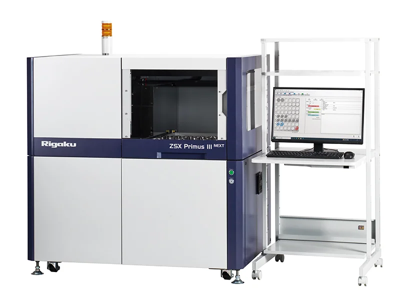 Rigaku ZSX Primus III NEXT delivers rapid elemental industrial quality control by quantitative determination of major and minor elements from Be through Cm for powder and solid samples.